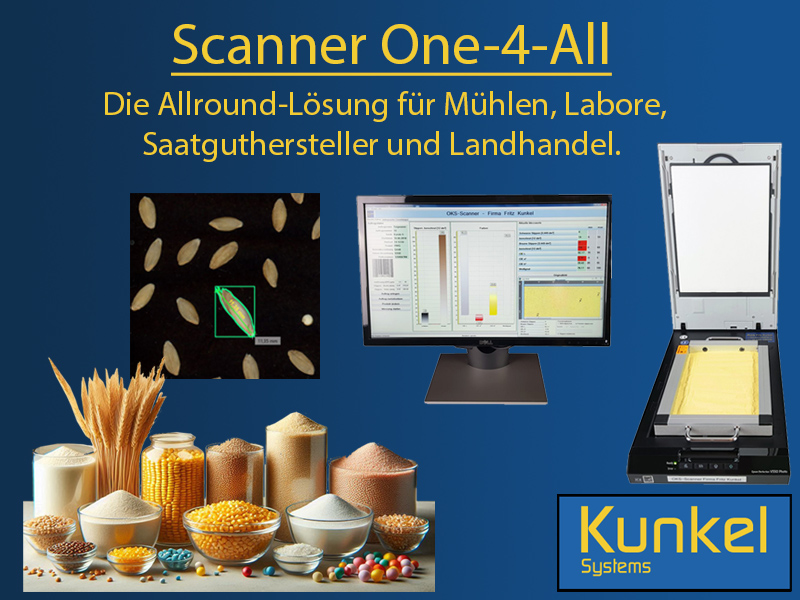 Mit dem neuen Scanner One-4-All haben wir all unser Wissen in einem System vereint und kombinieren die neusten Methoden der digitalen Bildverarbeitung und unsere Erfahrung in der Lebensmittelindustrie. Als Kunde erhalten Sie ein leicht zu verstehendes und bedienbares System, welchen Ihnen die aufwändige optische Untersuchung, Auszählung und Auswertung von Getreideproben komplett abnimmt.